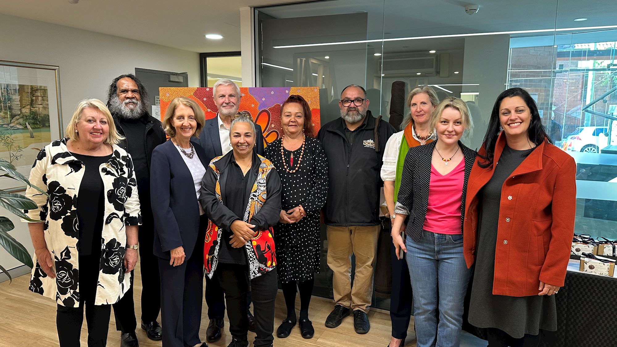 Honoured guests and special attendees arrived to join Australian Mutual Bank staff to celebrate the inaugural launch of the Bank’s Reflect Reconciliation Plan. The event was officially acknowledged by Brendan Kerin, Cultural Educator and Advisor for Metropolitan Local Aboriginal Land Council. The launch also welcomed Donna Ingram, Community & Cultural Senior Consultant with Murawin Indigenous Voice Consultancy who was integral during the RAP’s development and provided great insight and contribution to the final plan. It was also an honour to be joined by esteemed guests Bruce Shillingsworth (Senior Education Support Worker) and Viv Freeman (Manager) from the Barnardos Australia Yurungai Learning Centre, which helps provides support and care to Aboriginal and Torres Strait Islander children. The launch event also welcomed other representatives from Barnardos Australia including CEO Deirdre Cheers, Chair of the Board Janett Milligan, and Corporate Engagement Manager Annalise Wild.